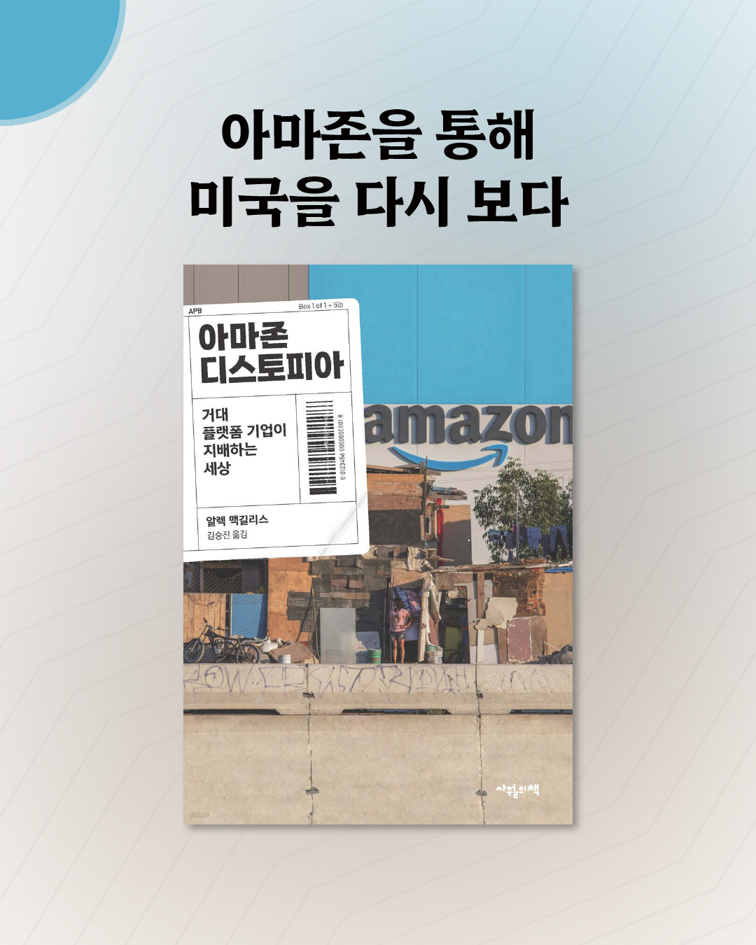 두꺼워요. 400쪽이 넘는 책입니다. 하지만 여러 인물과 지역 이야기가 구체적으로 펼쳐져서 어렵지 않게 읽히는 편이에요. 한국의 쿠팡과 겹쳐 보이는 지점들도 많고요. 이 책은 아마존과 미국 사회의 관계를 다루기 위해 부의 불평등, 지역 간 불평등, 노동, 권력과의 관계 등 다양한 프레임으로 접근합니다.