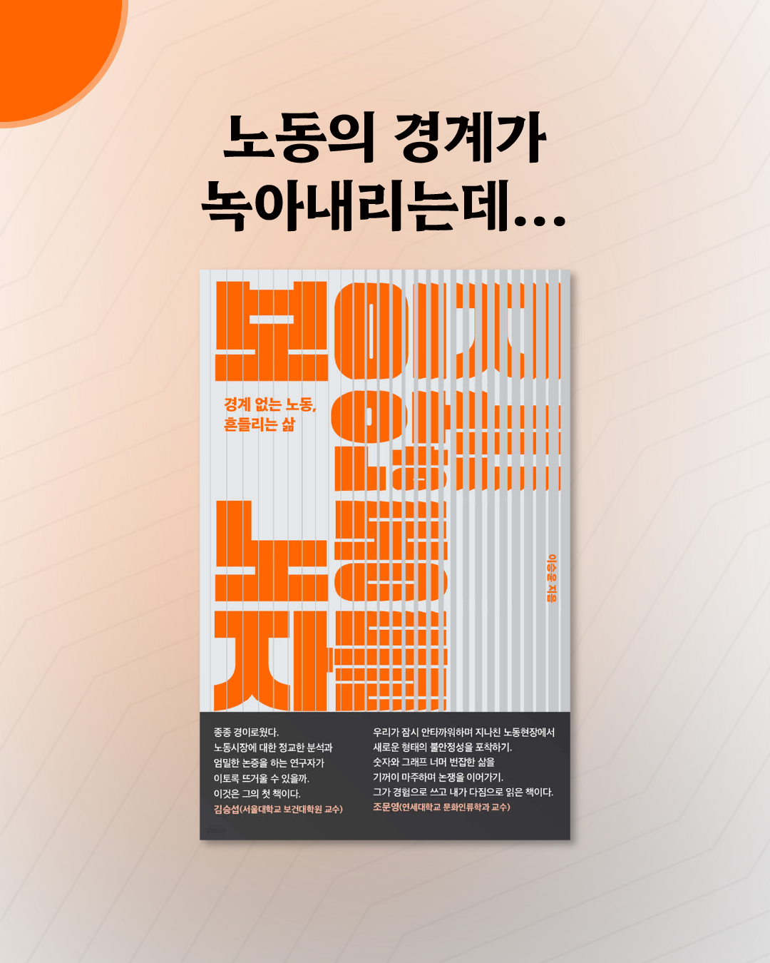 비정규직, 하청노동, 프리랜서, SNS 크리에이터, 크라우드워크, 플랫폼노동 등을 저자는 ‘액화노동(melting labour)’이라는 용어로 포착합니다.