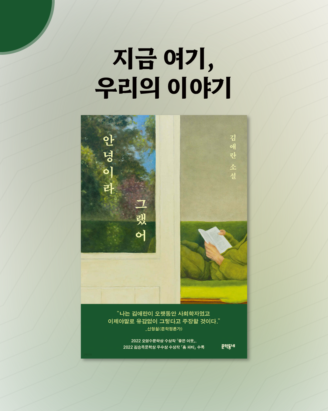 ‘안녕’에는 “‘반갑다’는 뜻과 ‘잘 가’라는 의미가 둘 다” 있을 뿐 아니라, 걱정이나 아무 탈이 없다는 의미도 있죠. 소설들은 호락호락하지 않은 한국 사회에서 나만 ‘안녕’하지 못한 게 아니라고, 변해버린 사회의 풍경 앞에서 모두가 저마다의 방식으로 ‘안녕’을 건네고 있다고 말하는 듯 합니다.