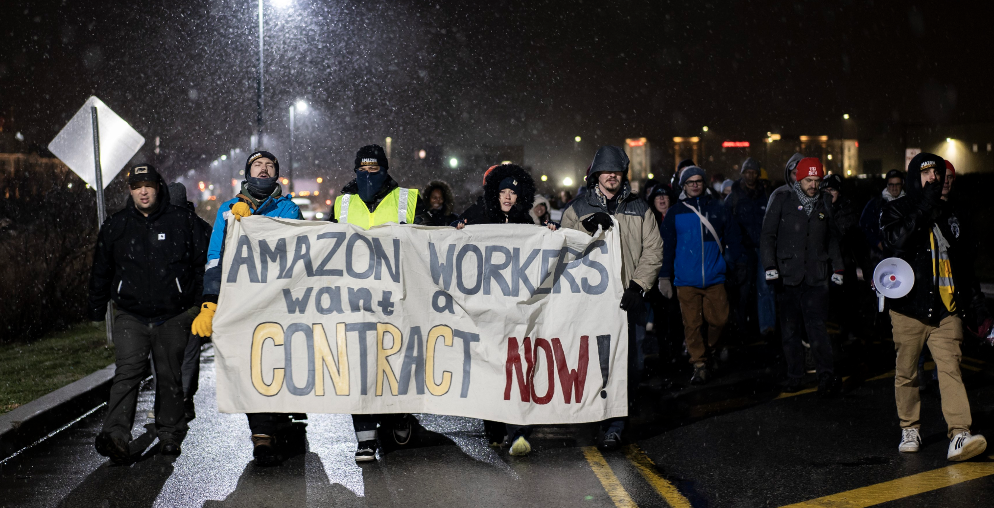 - 뉴욕에서 첫 번째 아마존 물류창고 노조가 결성된 지 2년이 넘었고, 전국 여러 창고의 노동자들이 노조를 결성하고 있습니다(2024년 말 기준으로 약 1만명이 아마존 노조에 가입). 그러나 아마존은 노조를 인정조차 하지 않고, 노조와 협상 역시 거부하고 있습니다.