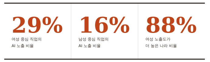 이러한 요인들 때문에 여성은 AI가 가장 잘 대체할 수 있는 역할에 집중되고, AI가 새롭게 만드는 기회는 더 누리기 어려운 구조에 처하게 됩니다.