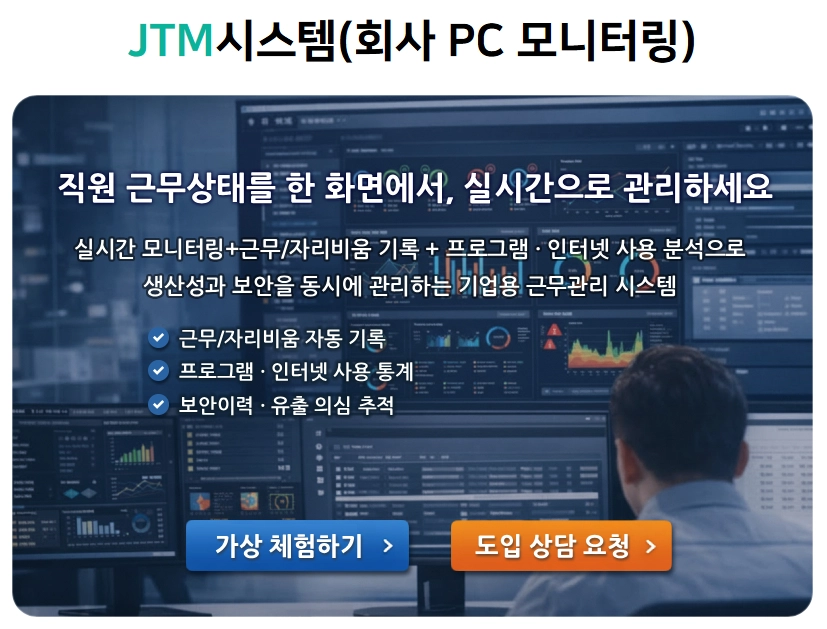 원격 근무자도 예외가 아닙니다. 키보드 입력, 마우스 움직임, 심지어 얼굴 표정까지 추적하는 소프트웨어가 시장에서 판매되고 있습니다. Teramind, Time Doctor, DeskTime, Controlio 같은 이름의 프로그램들입니다. 한국에도 직원 PC 모니터링 시스템을 판매하는 업체들이 존재합니다.