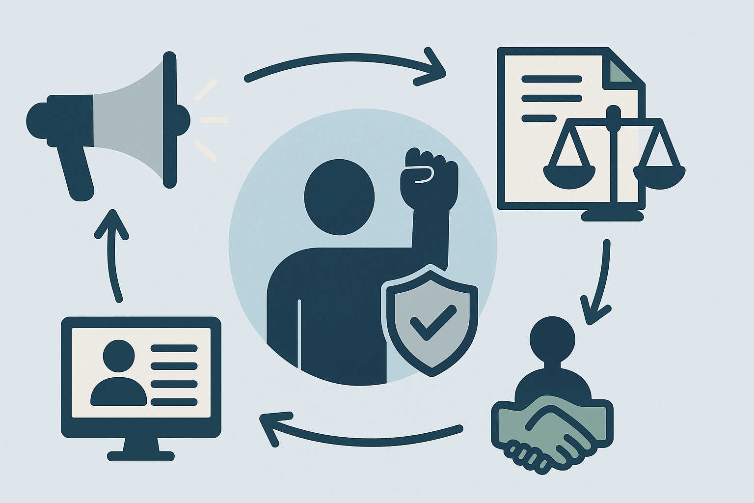 - 차별, 폭력, 괴롭힘, 성희롱 등의 문제를 대응하기 위한 불만제기 창구도 구축되어야 합니다.