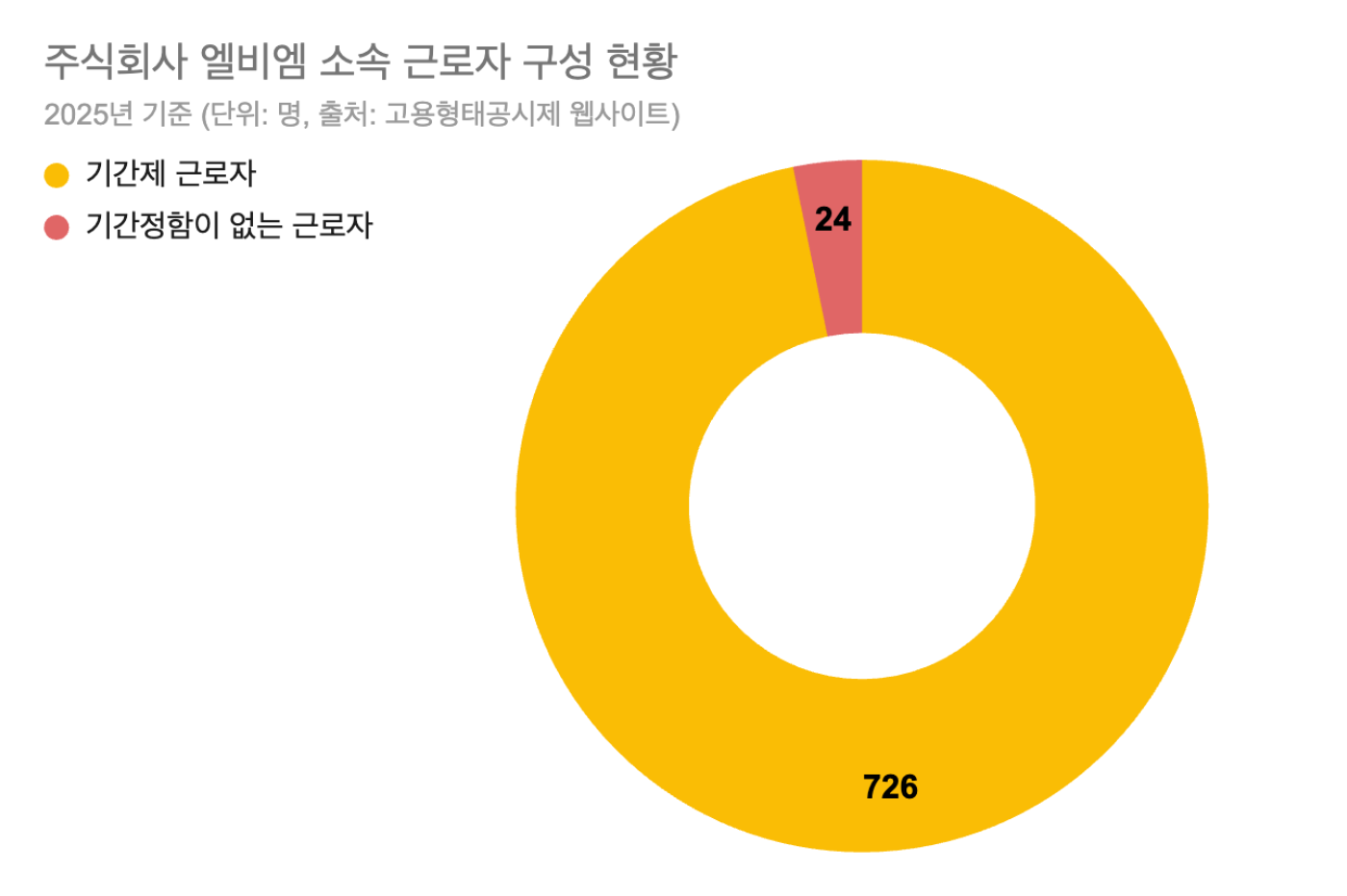 26세 청년 노동자가 과로사한 사건 이후 런던베이글뮤지엄(런베뮤) 운영법인 엘비엠의 기간제 비율이 무려 96.8%(750명 중 726명)이라는 사실이 알려졌어요. 동종업계 다른 기업과 비교해도 기간제 비율이 현저히 높은, 비정상적인 고용 구조였습니다.