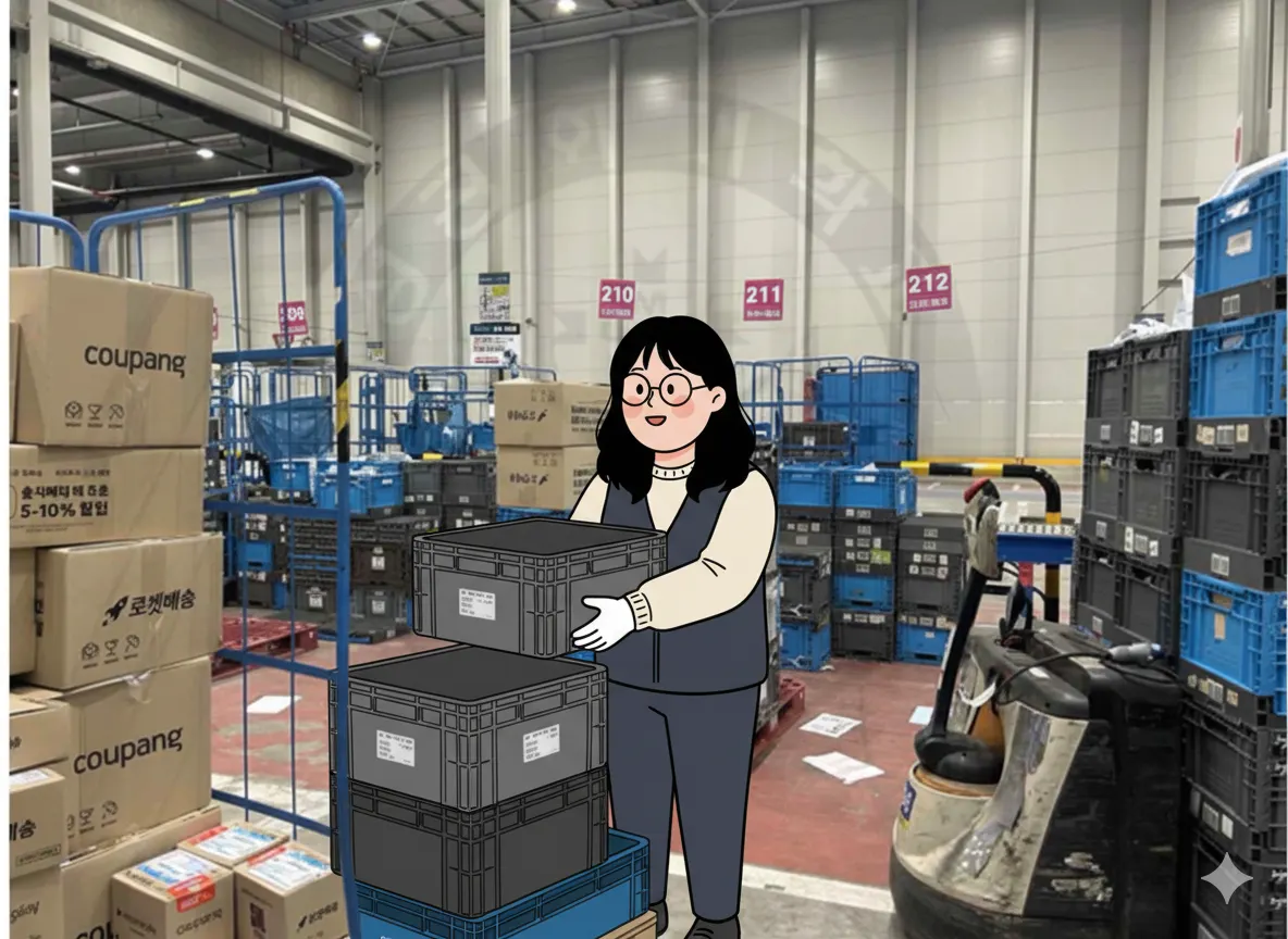 쿠팡 물류센터는 주로 도시 외곽에 위치하고, 24시간 돌아갑니다. 물류센터 건물에 들어서면 모든 게 엄청나게 크고 다 획일적이어서 상당히 당황스러워요. 처음 갔을 때 저도 30분이나 헤맸어요.